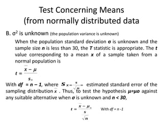 There Are Two Statistical Tests For Mean 1 Z Test Used For Large Samples N 30 1 T Test Used For Small Samples N 30 Ppt Download